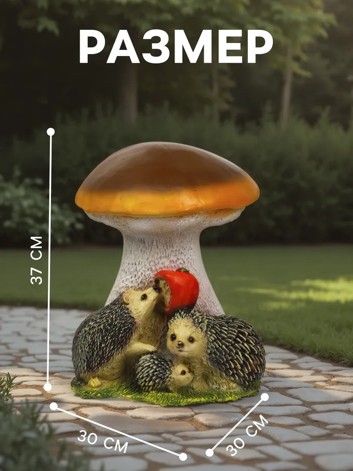 Садовая фигура из полистоуна «Гриб белый с ежами и яблоком», 37×30×30 см — Характеристики