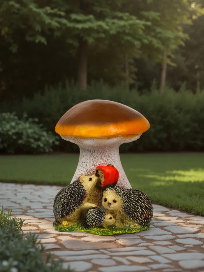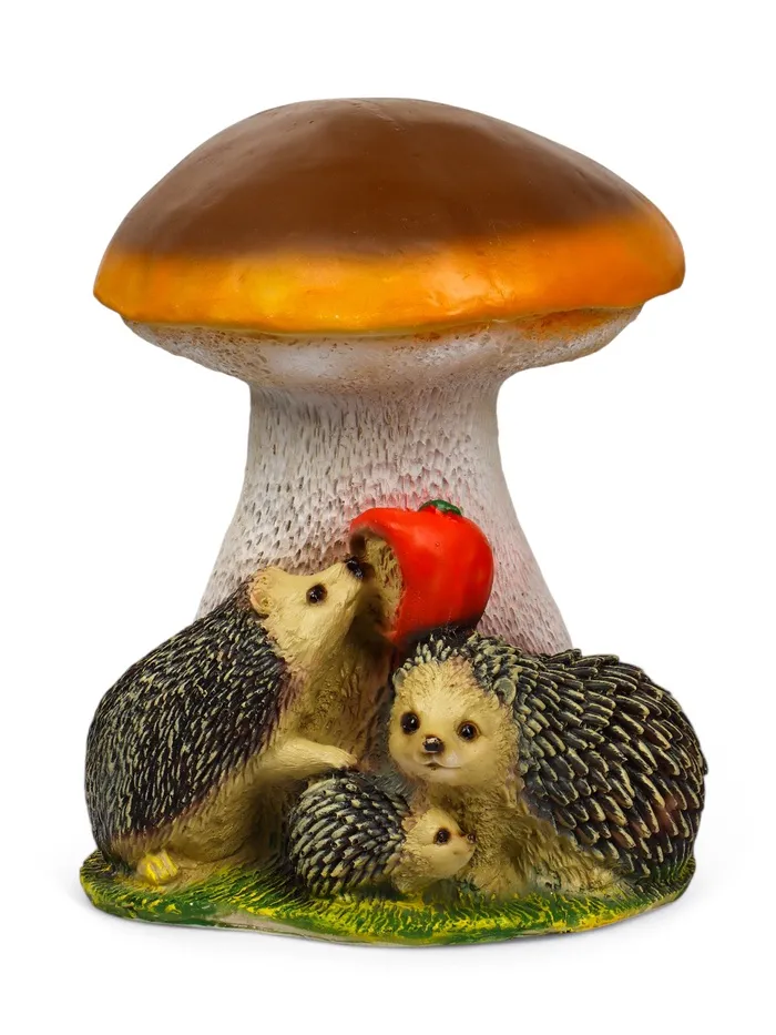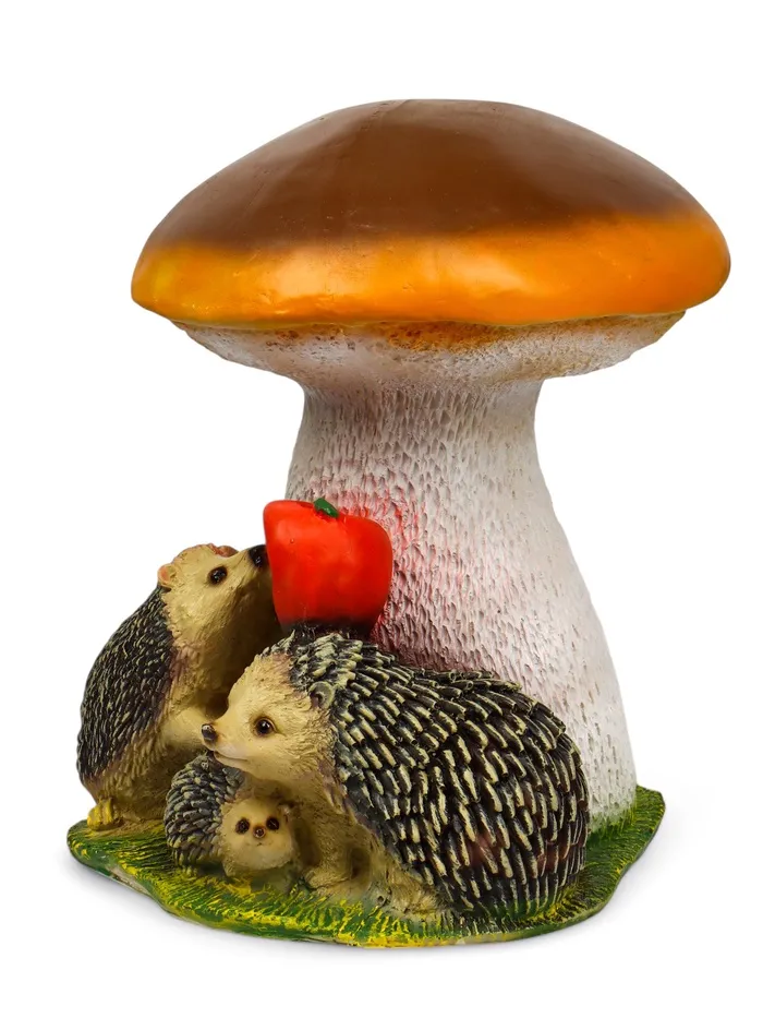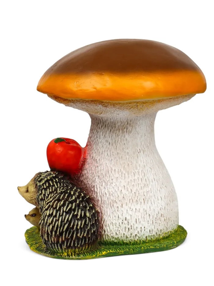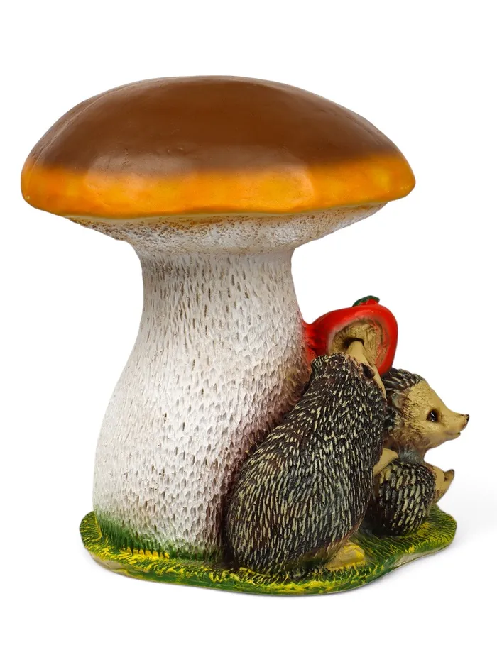 Садовая фигура из полистоуна «Гриб белый с ежами и яблоком», 37×30×30 см