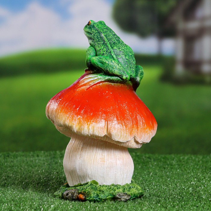 Садовая фигура из полистоуна «Гриб с лягушкой», 24×14×14 см — Характеристики