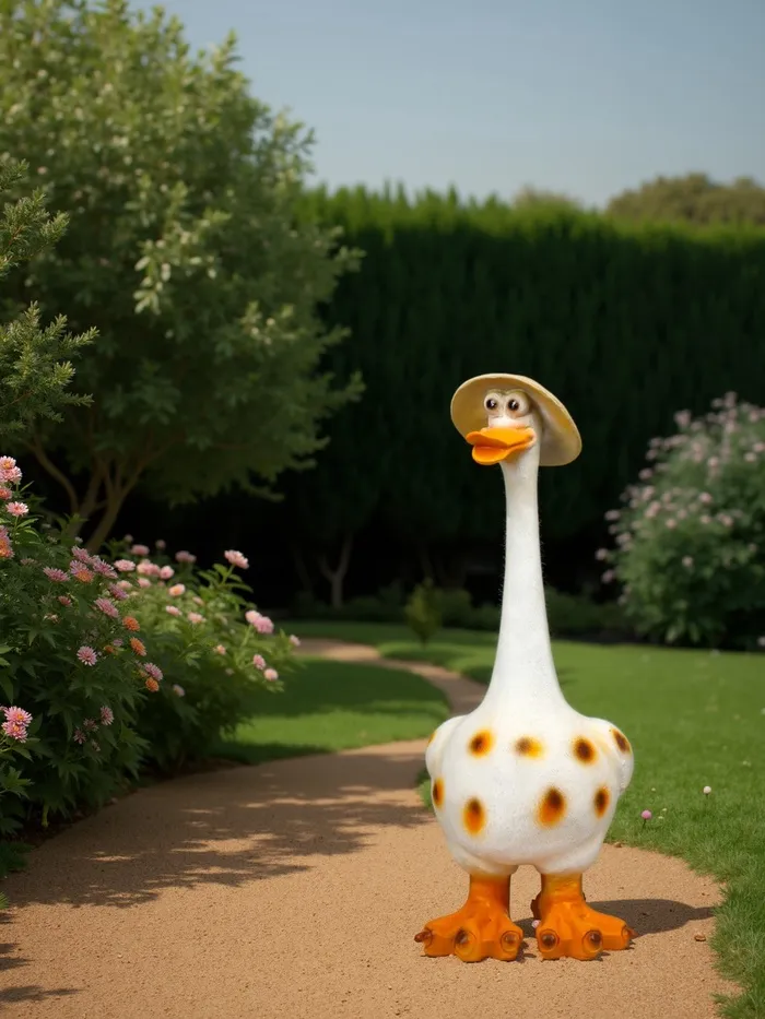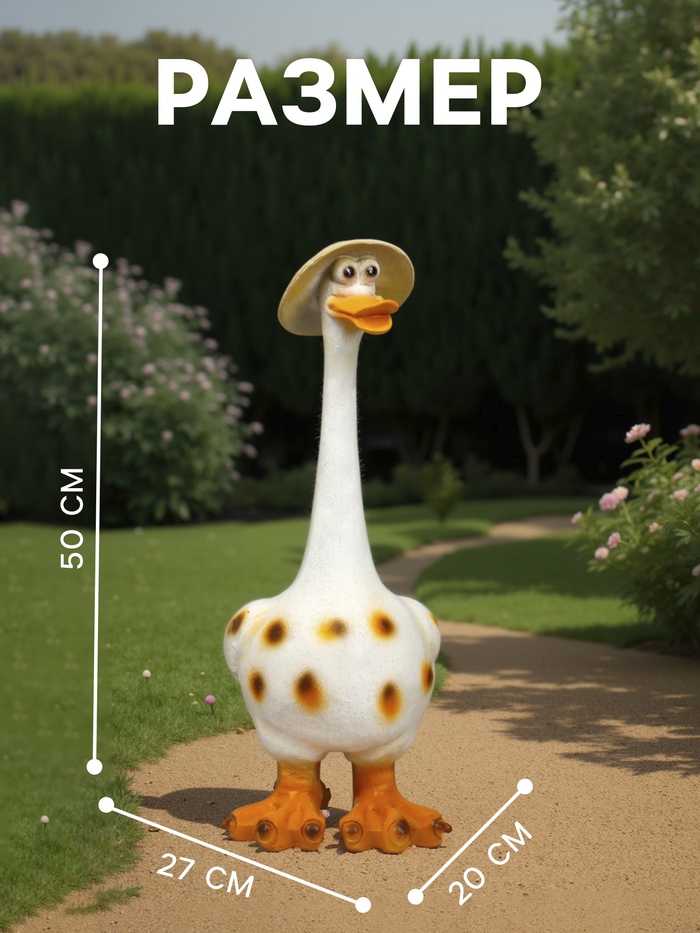 Садовая фигура из полистоуна «Гусь в шляпе малый», 50×27×20 см — Характеристики
