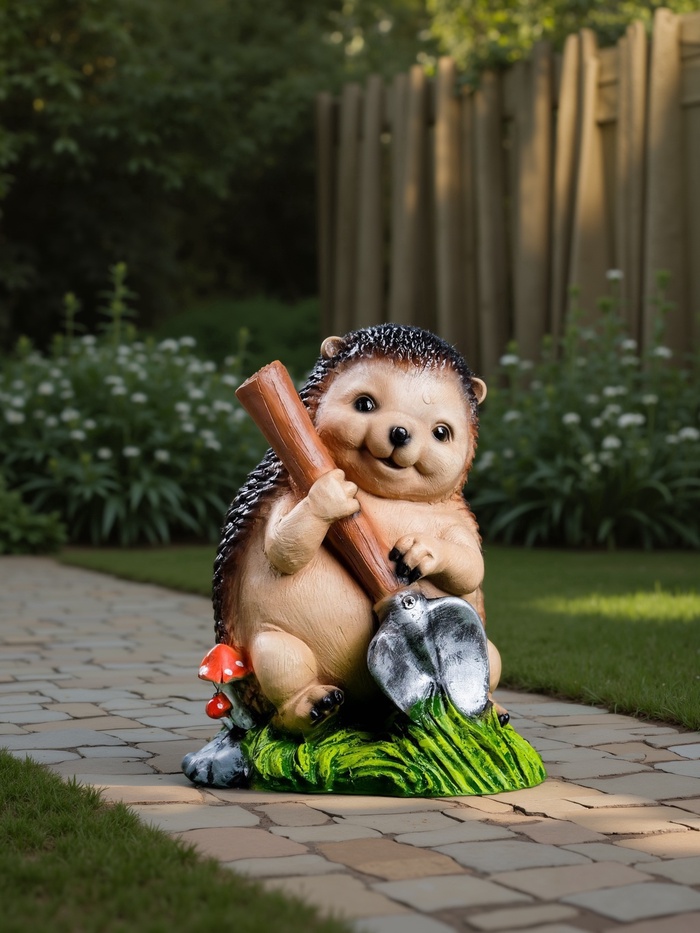 Садовая фигура из полистоуна «Ёж с лопатой», 31×22×22 см