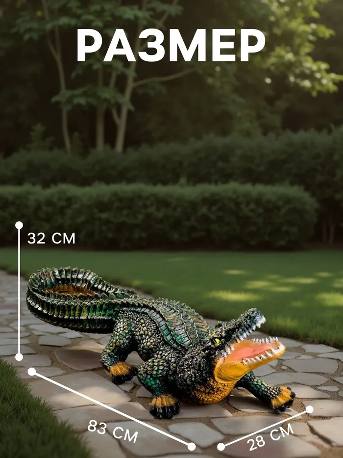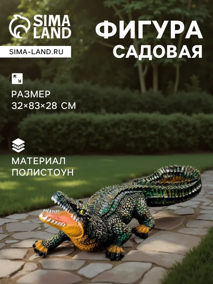 Садовая фигура из полистоуна «Крокодил», 32×83×28 см — Характеристики