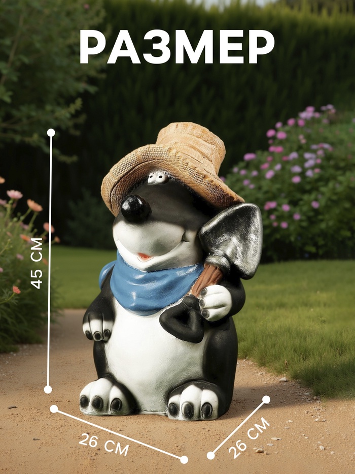 Садовая фигура из полистоуна «Крот в шляпе», 45×26×26 см — Характеристики
