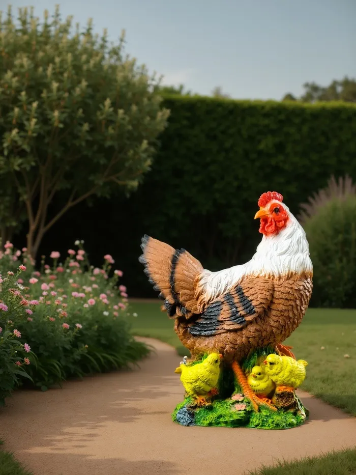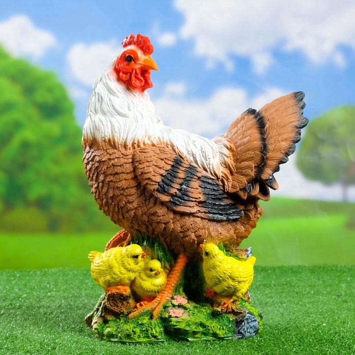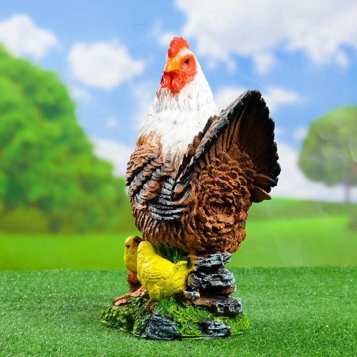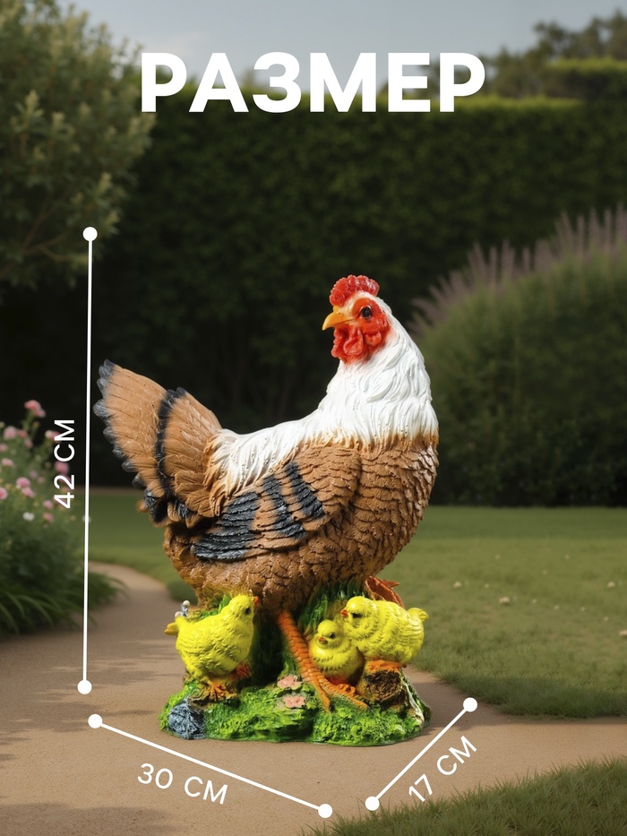 Садовая фигура из полистоуна «Курица с цыплятами», 42×17×30 см — Характеристики