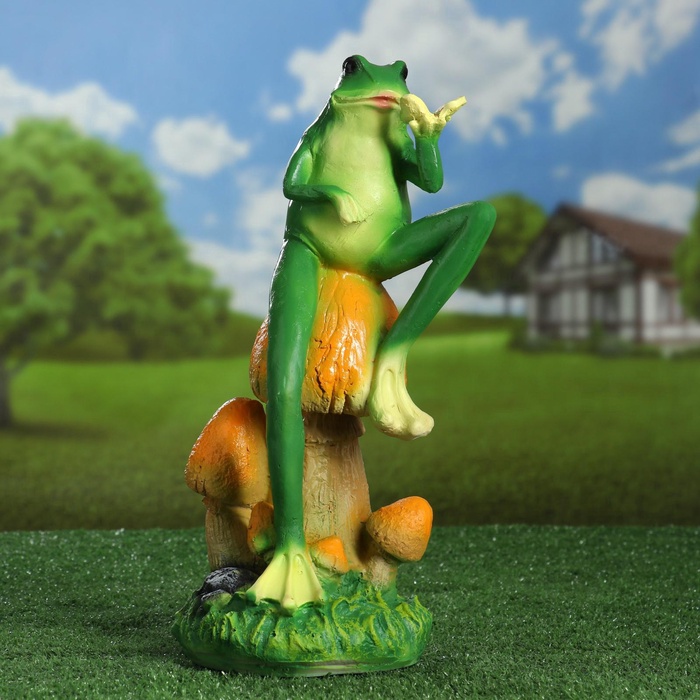 Садовая фигура из полистоуна «Лягушка с бабочкой», 39×14×14 см