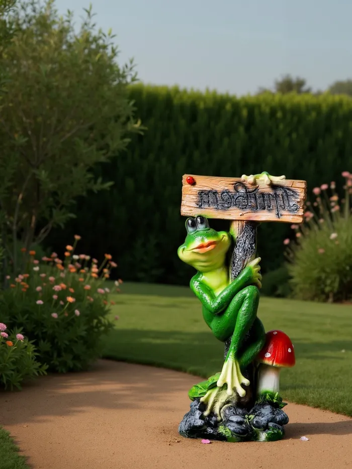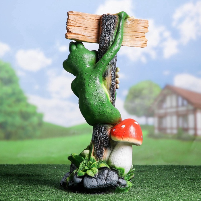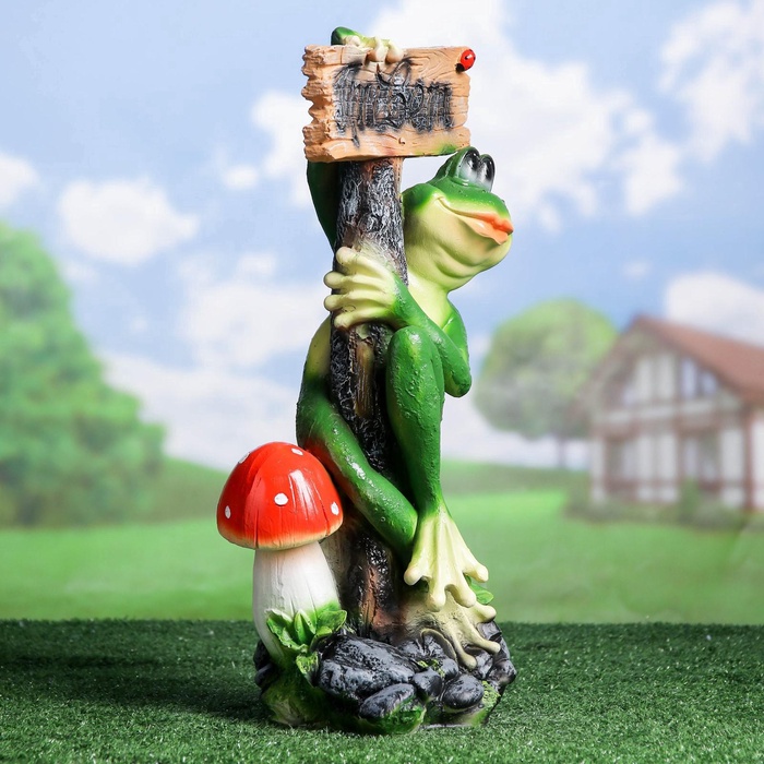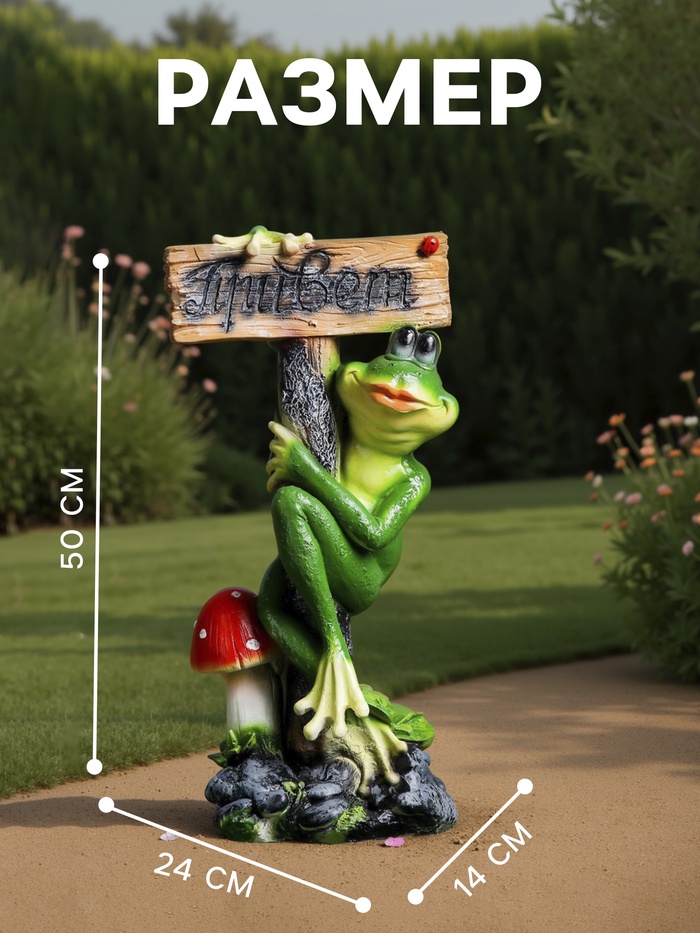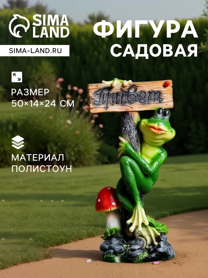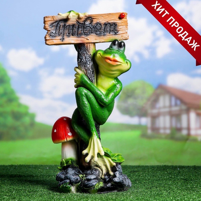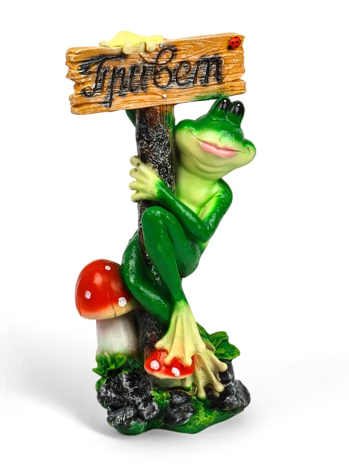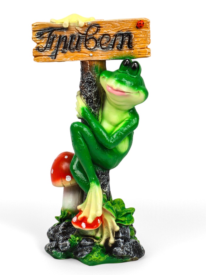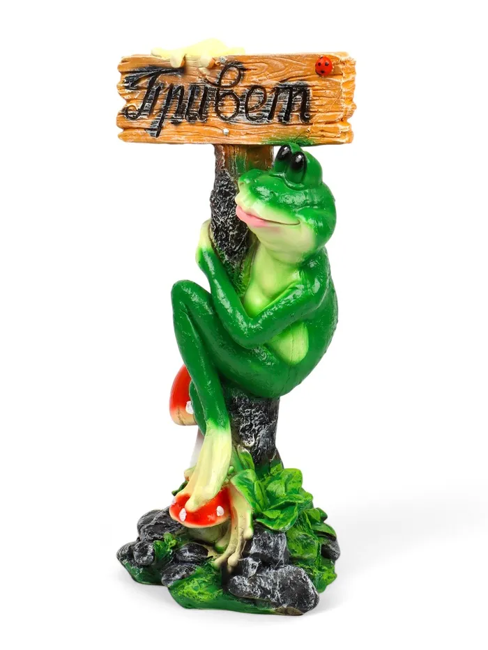 Садовая фигура из полистоуна «Лягушка с табличкой ПРИВЕТ», 50×14×24 см — Характеристики