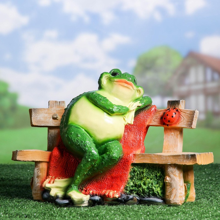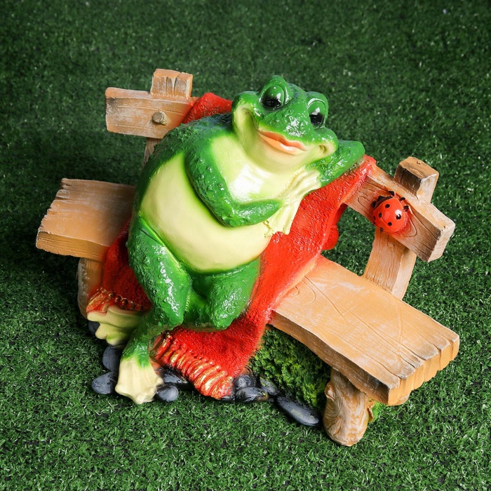Садовая фигура из полистоуна «Лягушка сидит на лавочке», 27×38 см — Характеристики