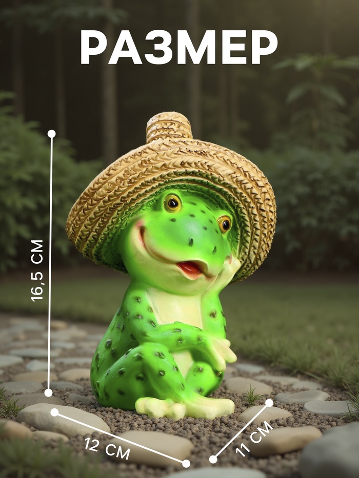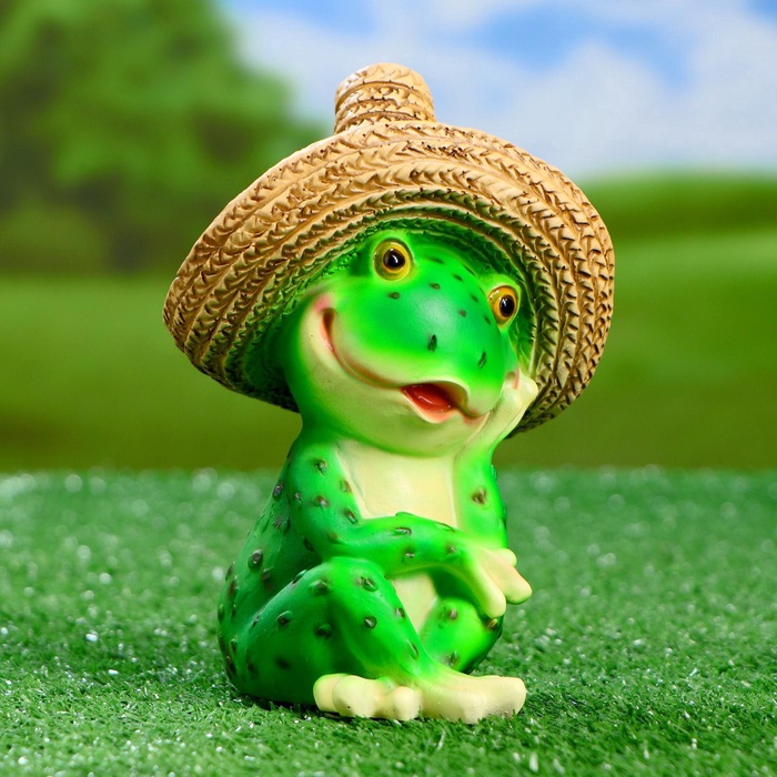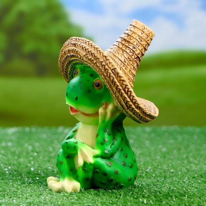 Садовая фигура из полистоуна «Лягушка в соломенной шляпе», 16.5×11×12 см — Характеристики