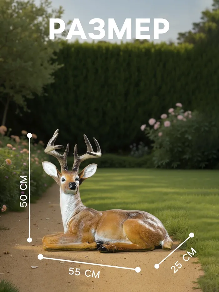 Садовая фигура из полистоуна «Олень лежит», 50×25×55 см — Характеристики