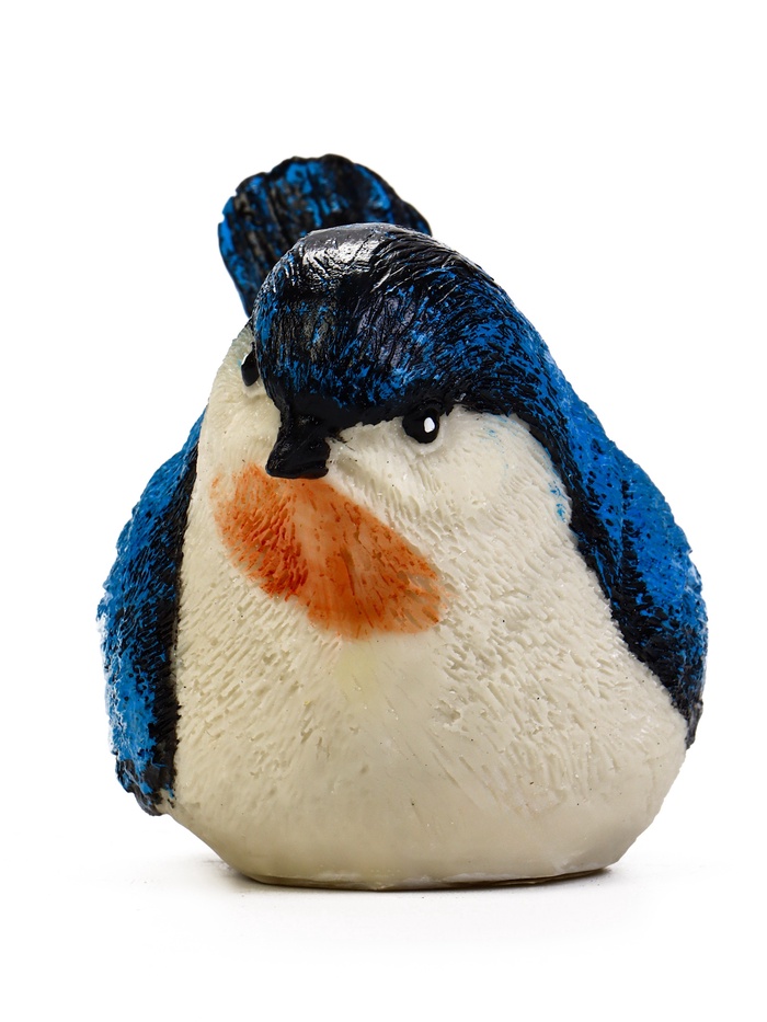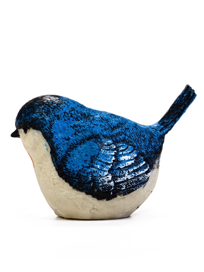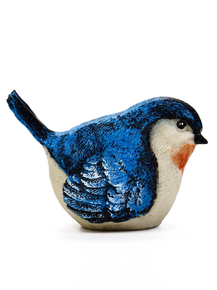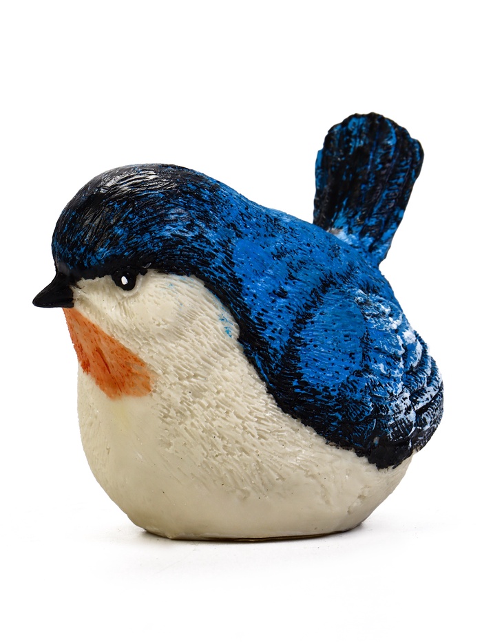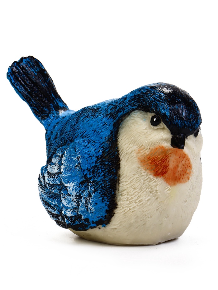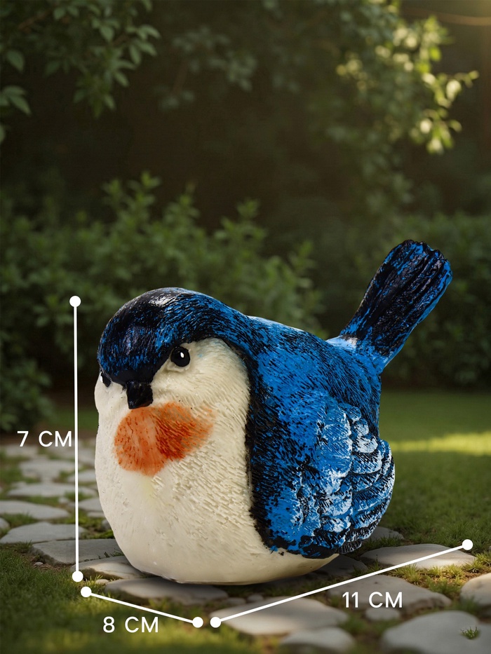 - Спокойная цветовая гамма: Синее оперение с белыми деталями выглядит гармонично в естественной среде. Фигурка привлекает внимание, не нарушая общей атмосферы сада.
