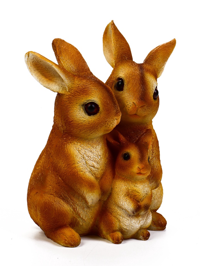 Садовые фигурки «Семья зайцев» из полистоуна — это композиция для украшения вашего сада. Коричневый цвет и композиция из трёх зайцев создают гармоничный ансамбль в естественной среде.