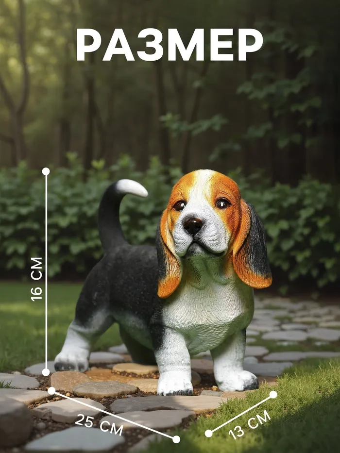 Садовая фигура из полистоуна «Щенок бассет-хаунда», 16×13×25 см — Характеристики