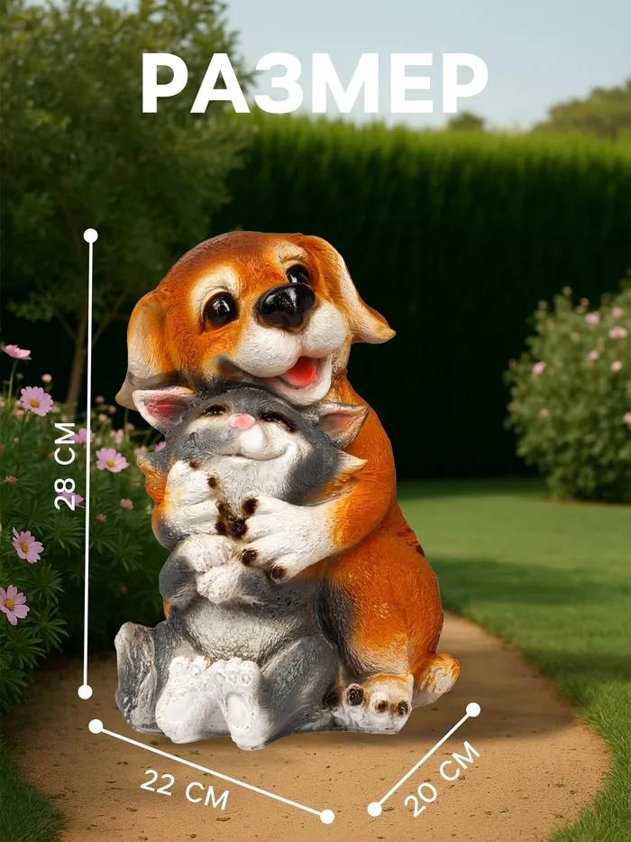 Садовая фигура из полистоуна «Щенок с котёнком», 28×22×20 см — Характеристики