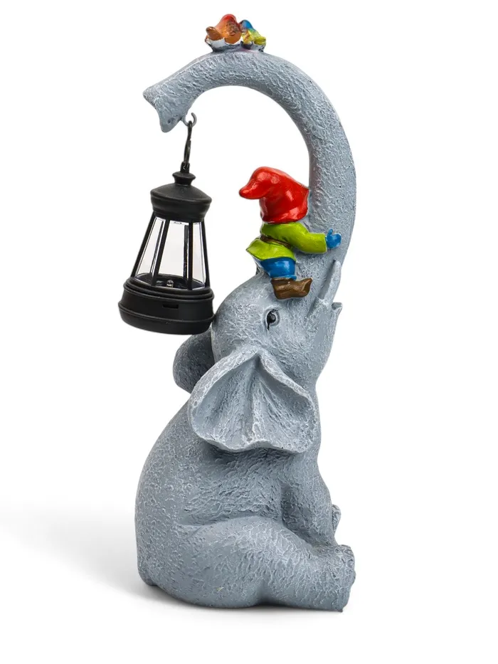 «Слоник с гномами» - это необычное и практичное украшение для вашего сада. Обворожительный днем и уютный вечером, он создаст атмосферу сказки без лишних хлопот. Выбирайте качественный декор по разумной цене!
