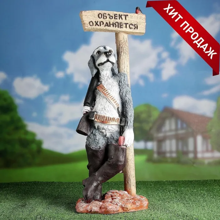 Садовая фигура из полистоуна «Собака - Объект охраняется», 59×20×24.5 см — Характеристики