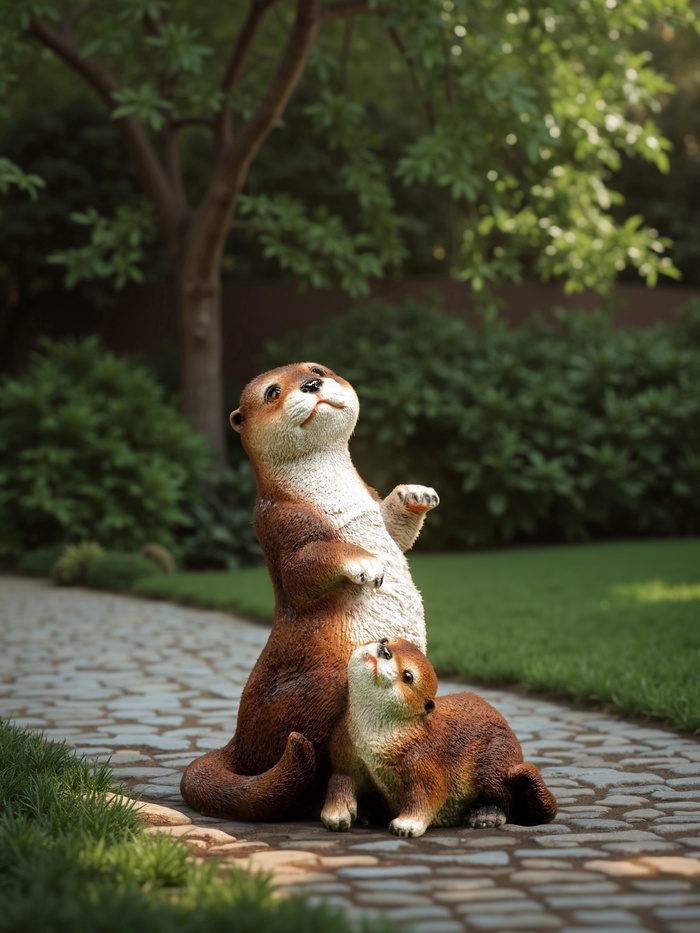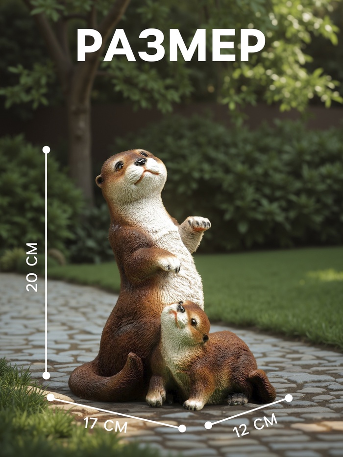Садовая фигура из полистоуна «Выдра с малышом», 20×12×17 см — Характеристики