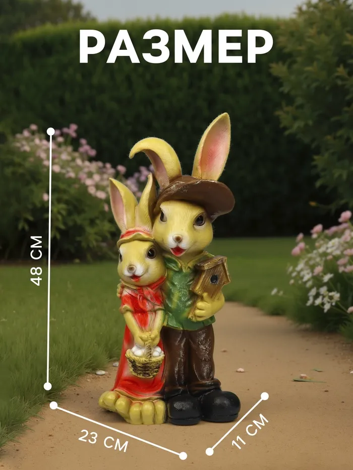 Садовая фигура из полистоуна «Зайчики», 48×11×23 см — Характеристики
