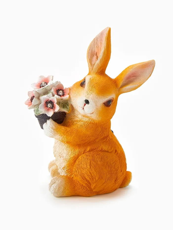 Садовая фигура из полистоуна «Зайка с букетом», 22×11×17 см, с подсветкой — Характеристики