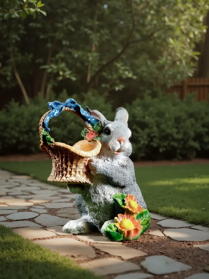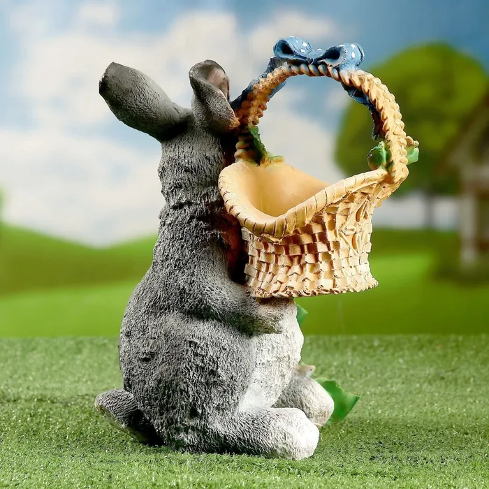 Садовая фигура из полистоуна «Зайка с лукошком», 33.5×28×28 см