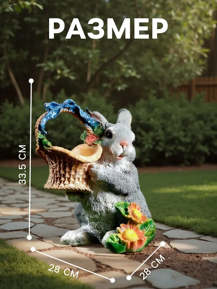 Садовая фигура из полистоуна «Зайка с лукошком», 33.5×28×28 см — Характеристики