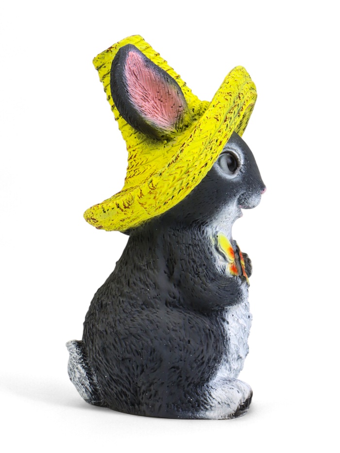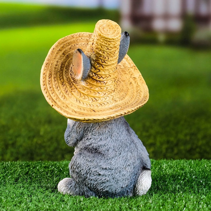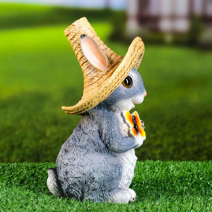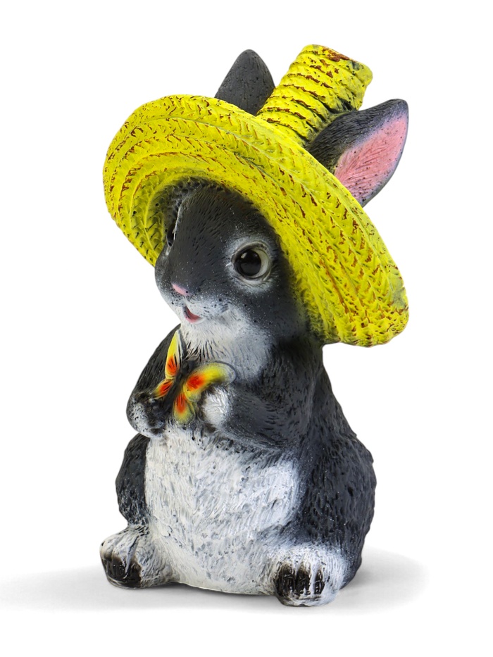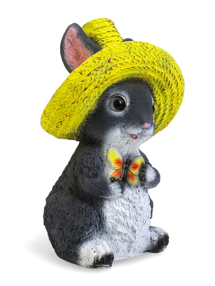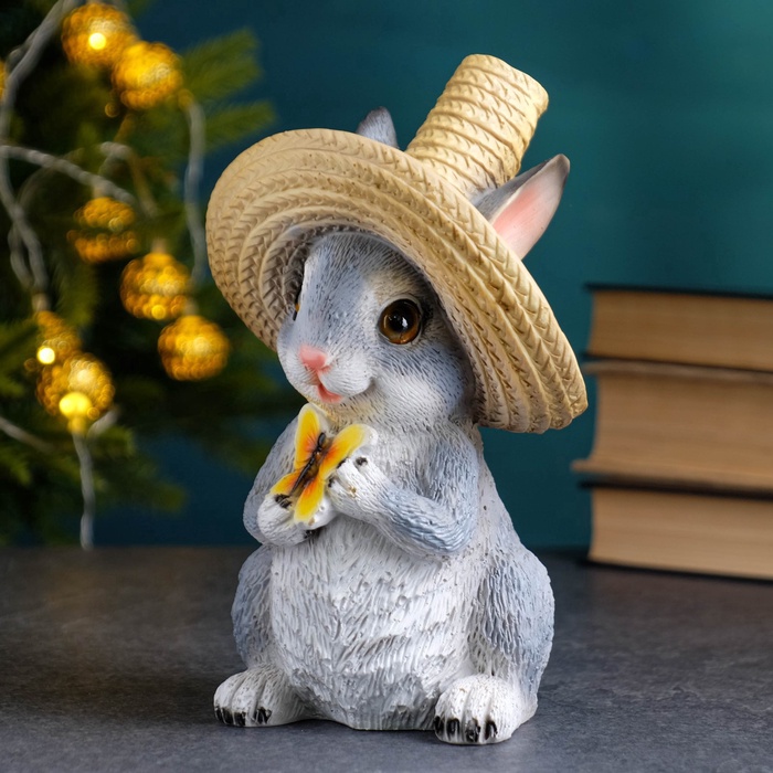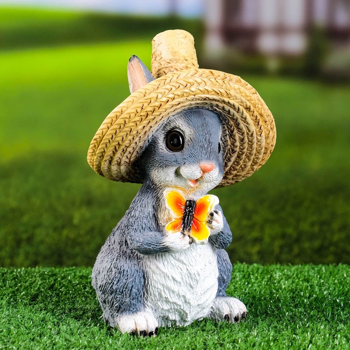 Садовая фигура из полистоуна «Зайка в соломенной шляпе с бабочкой», 19×12×14 см — Характеристики
