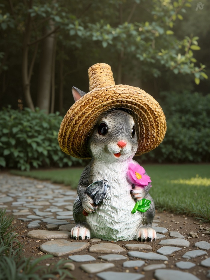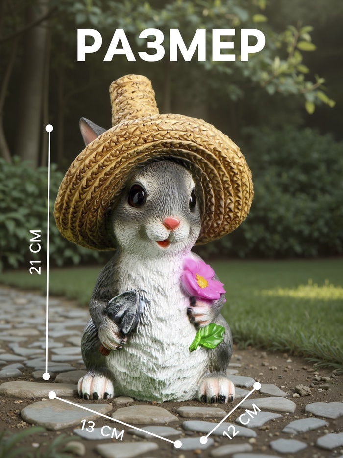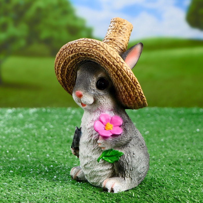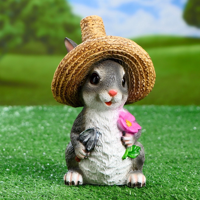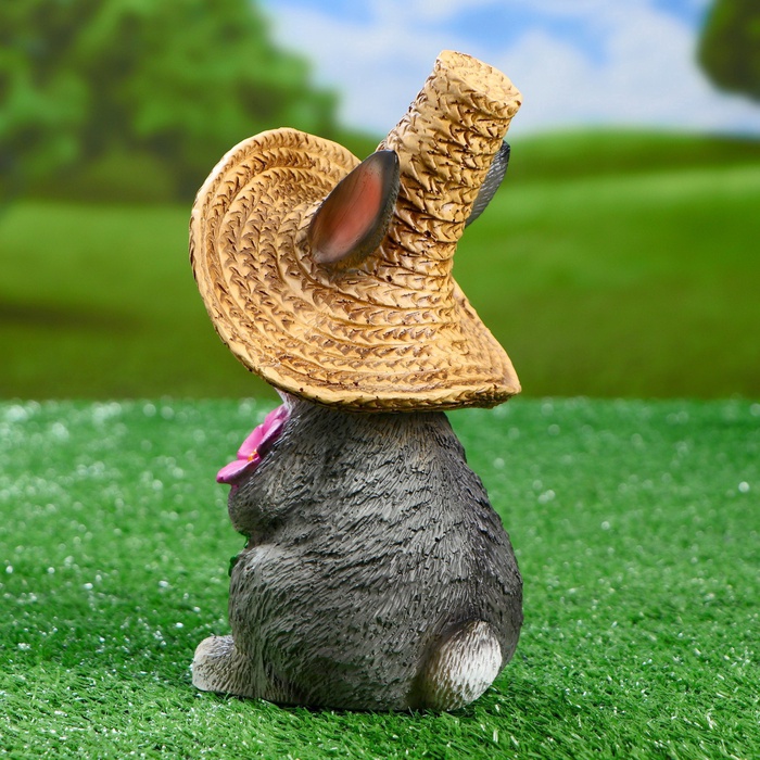 Садовая фигура из полистоуна «Зайка в соломенной шляпе с цветочком», 21×12×13 см — Характеристики