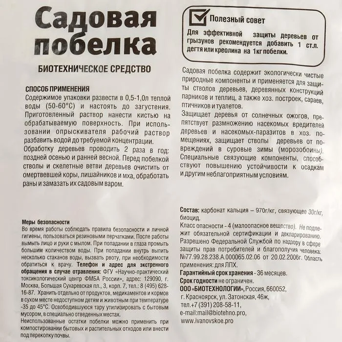 Биотехническое средство для защиты стволов деревьев от ожогов и насекомых-вредителей, спор грибов-патогенов.