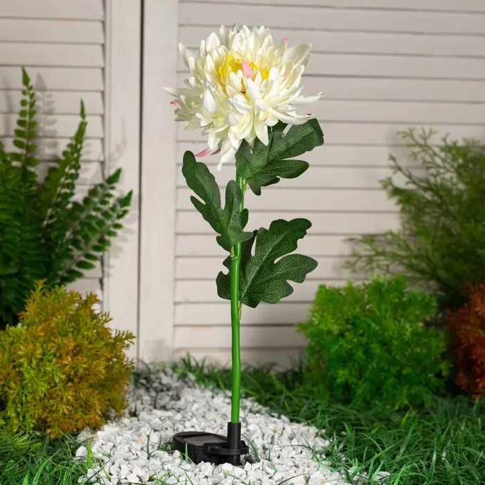 Садовый светильник «Хризантема белая», уличный, на солнечной батарее, 80 см, 1 LED, свечение белое — Характеристики