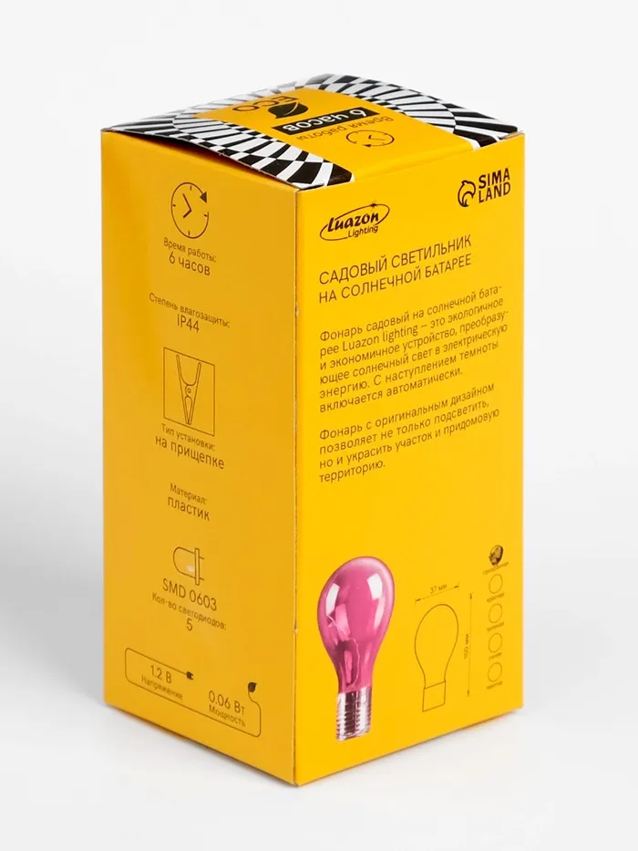 Садовый светильник «Лампочка», уличный, на солнечной батарее, 8×14×8 см, 5 LED, свечение белое — Характеристики