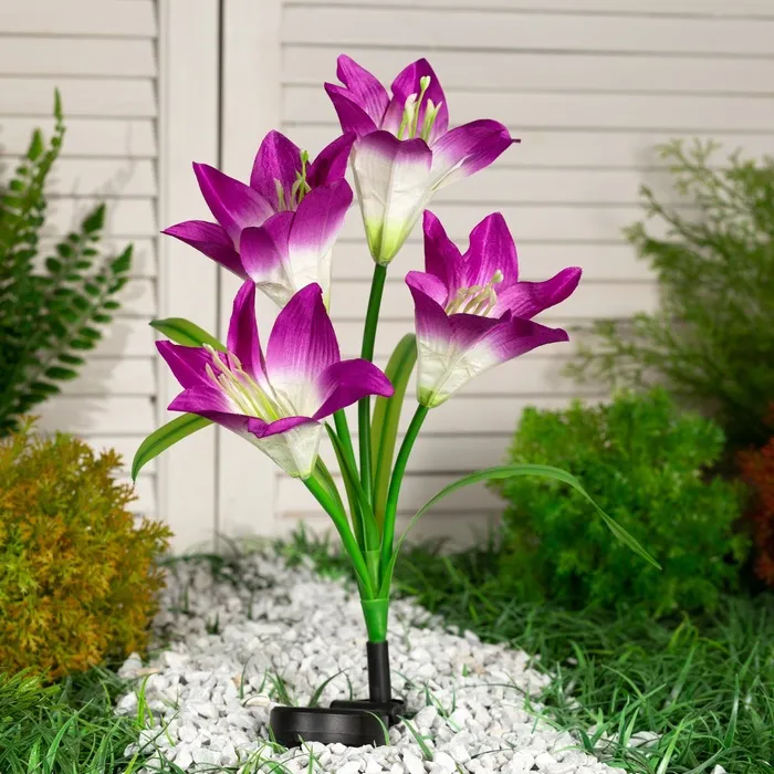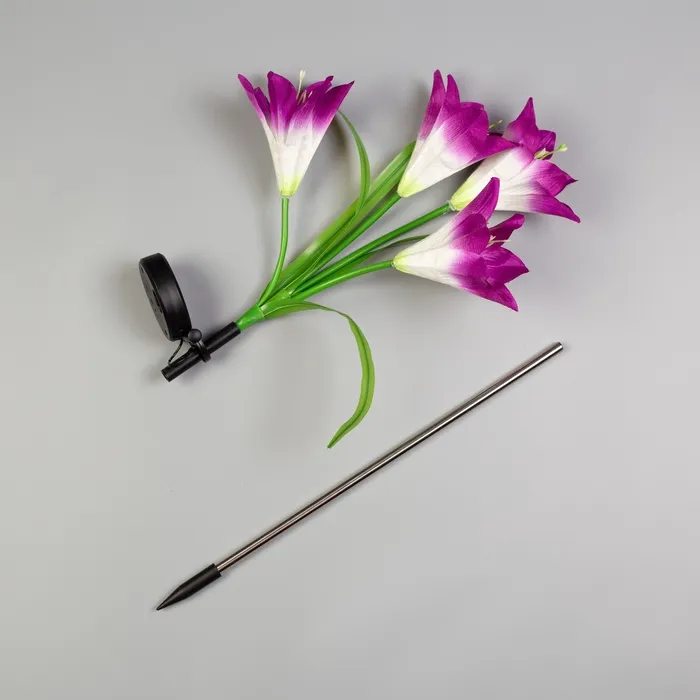 Садовый светильник «Лилия фиолетовая», уличный, на солнечной батарее, 70 см, 4 LED, свечение мульти — Характеристики