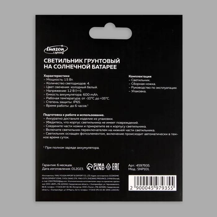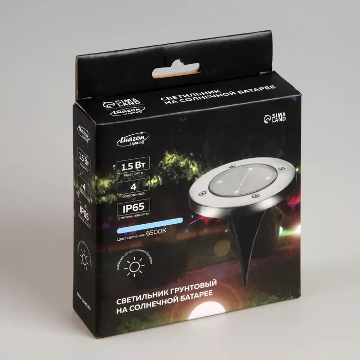 Садовый светильник на солнечной батарее, 4 LED, свечение белое — Характеристики
