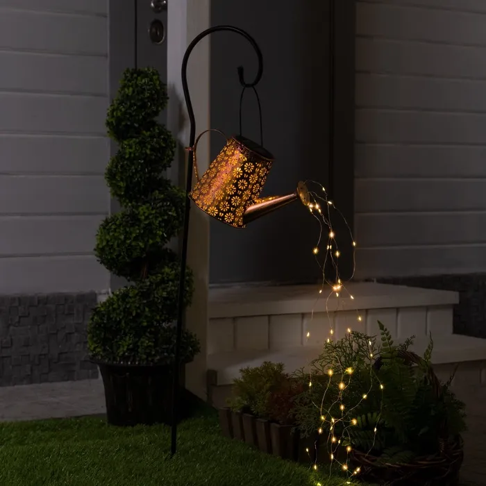 Представьте, как ваш сад наполняется мягким и тёплым светом, который создаёт уютную атмосферу в любое время суток. Этот садовый светильник в форме лейки с бронзовым основанием станет не только практичным источником освещения, но и стильным акцентом в вашем дворе. С 55 встроенными LED-лампами и теплым белым светом, он дарит нежное освещение, которое идеально подходит для вечерних прогулок или романтических ужинов на свежем воздухе.