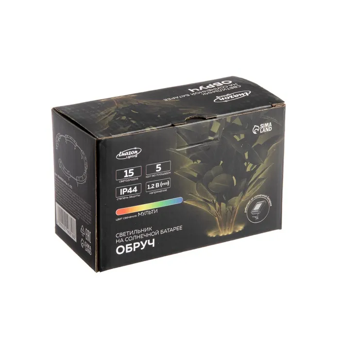 Садовый светильник «Обруч», уличный, на солнечной батарее, 15 LED, свечение мульти — Характеристики