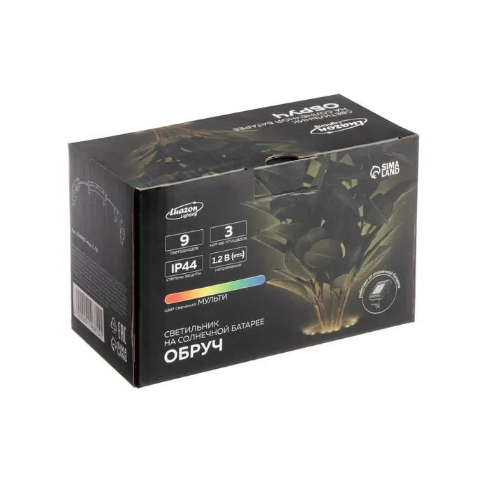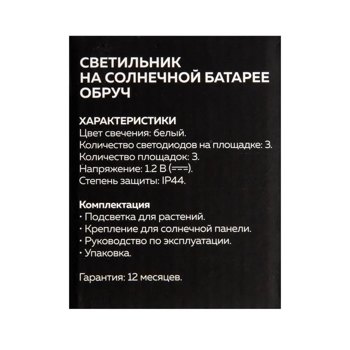 Садовый светильник «Обруч», уличный, на солнечной батарее, 9 LED, свечение мульти — Характеристики