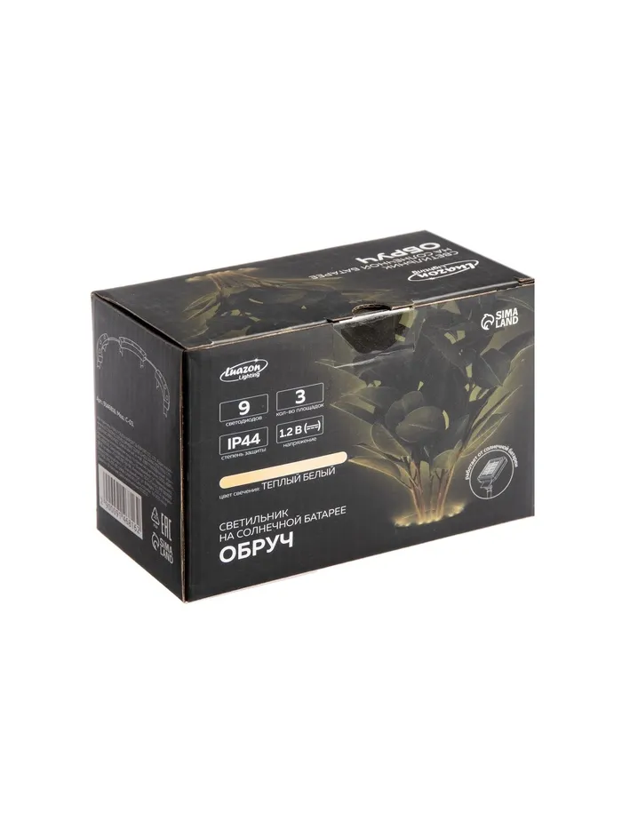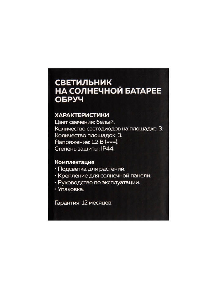 Садовый светильник «Обруч», уличный, на солнечной батарее, 9 LED, свечение тёплое белое — Характеристики