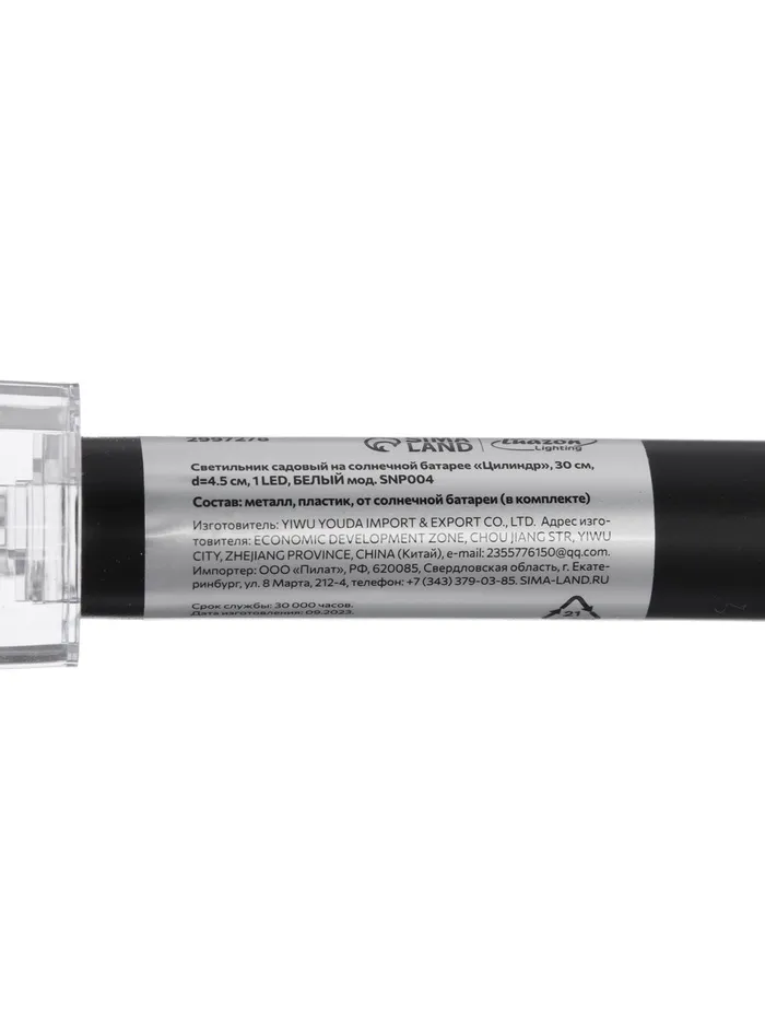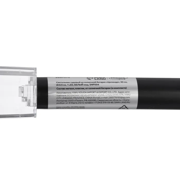 Садовый светильник «Цилиндр», уличный, на солнечной батарее, 4.5×30×4.5 см, 1 LED, свечение белое — Характеристики