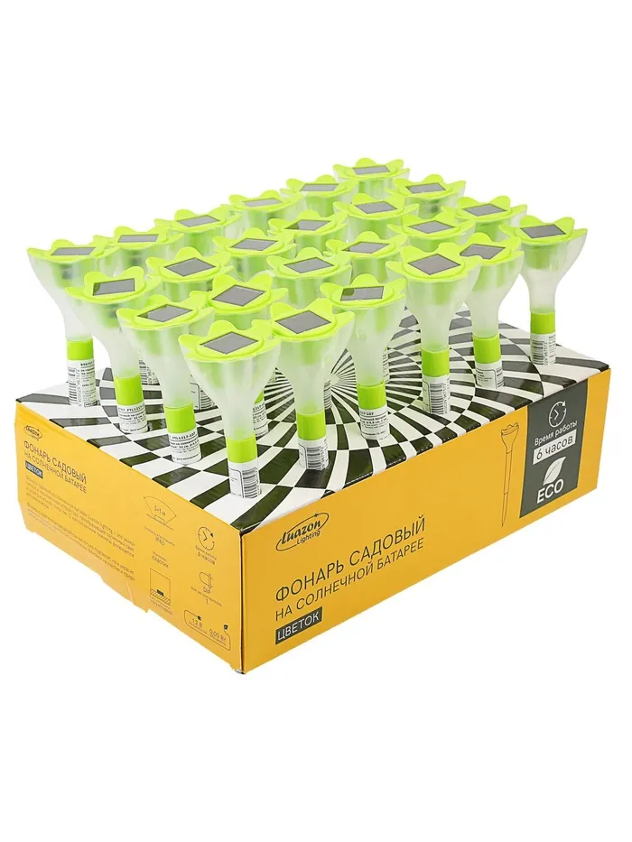 Садовый светильник «Цветок зелёный», уличный, на солнечной батарее, 6×29×6 см, 1 LED, свечение белое — Характеристики