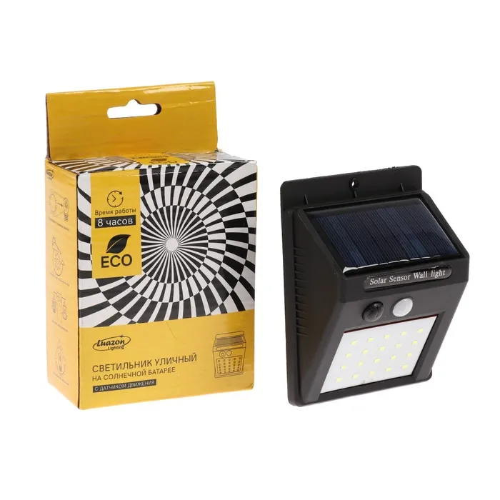 Садовый светильник, уличный, на солнечной батарее, накладной, 20 LED, свечение белое