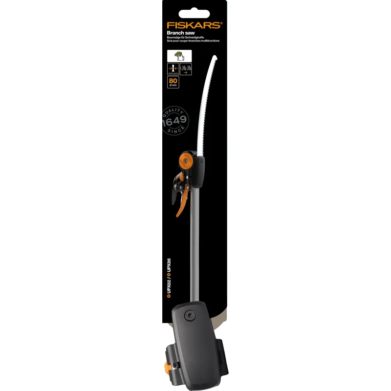Fiskars пила, дополнительный элемент для многофункциональных секаторов Fiskars (UPX86, UPX82). Легко крепится к рукоятке многофункционального секатора, обеспечивая точность и удобство при работе в саду.
