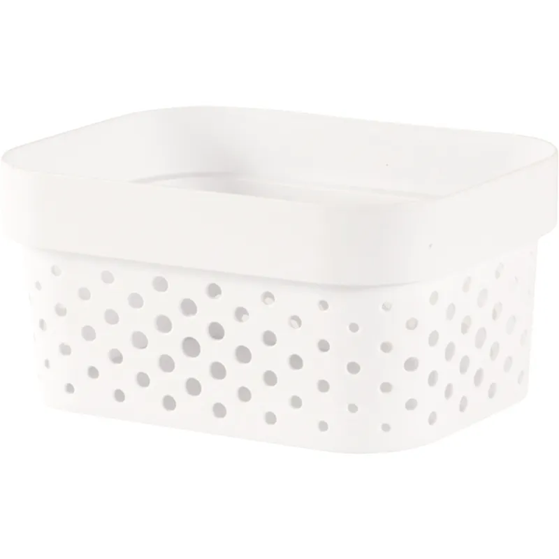 Белая универсальная, легкая и прочная корзина для хранения объемом 1,4 л. Изготовлена из полипропилена.
