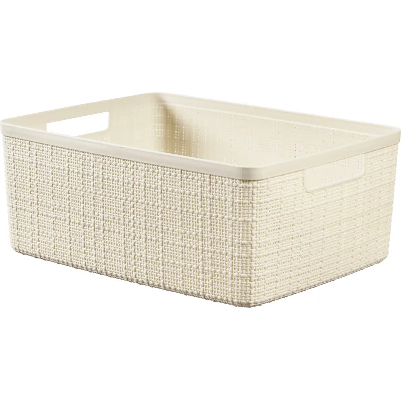Пластиковая корзина для хранения с поверхностью, напоминающей джутовую ткань. Идеально подойдет для организации пространства в вашем доме. Размеры: 14,5 x 28,2 x 36,2 см. Цвет: натуральный белый.