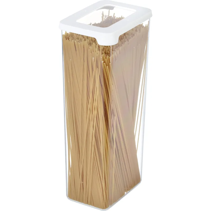 Этот герметичный и модульный контейнер объемом 2,25 литра идеально подходит для хранения сухих продуктов. Стильный дизайн делает его отличным выбором для макаронных изделий, таких как спагетти. Благодаря прозрачным стенкам и крышке с окном, содержимое видно с любой стороны. Контейнер защитит ваши продукты от влаги, пыли и насекомых. Удобно складывается в стопку.