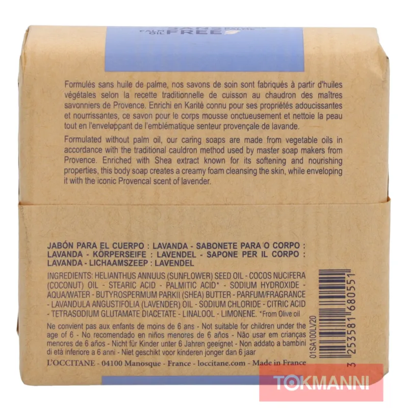 Это мыло L'Occitane с маслом ши и лавандой весом 100 г порадует вашу кожу мягким и деликатным уходом. Мыло обладает успокаивающим ароматом лаванды и обогащено питательными свойствами масла ши, что делает его идеальным для ежедневного использования. Позаботьтесь о своей коже с продуктом, который создан для нежного очищения и увлажнения.