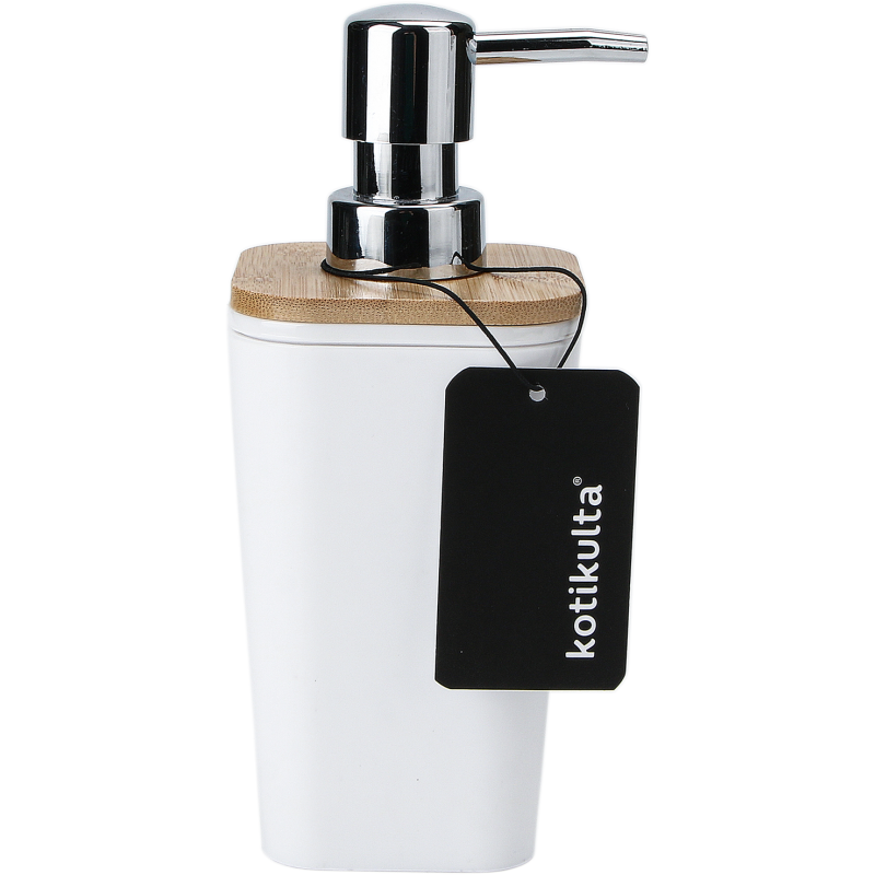 Дозатор для мыла Kotikulta Kaisla привносит спокойный и минималистичный скандинавский стиль в вашу ванную комнату. Изготовленный из PS-пластика и бамбука, он станет не только функциональным, но и стильным дополнением интерьера.