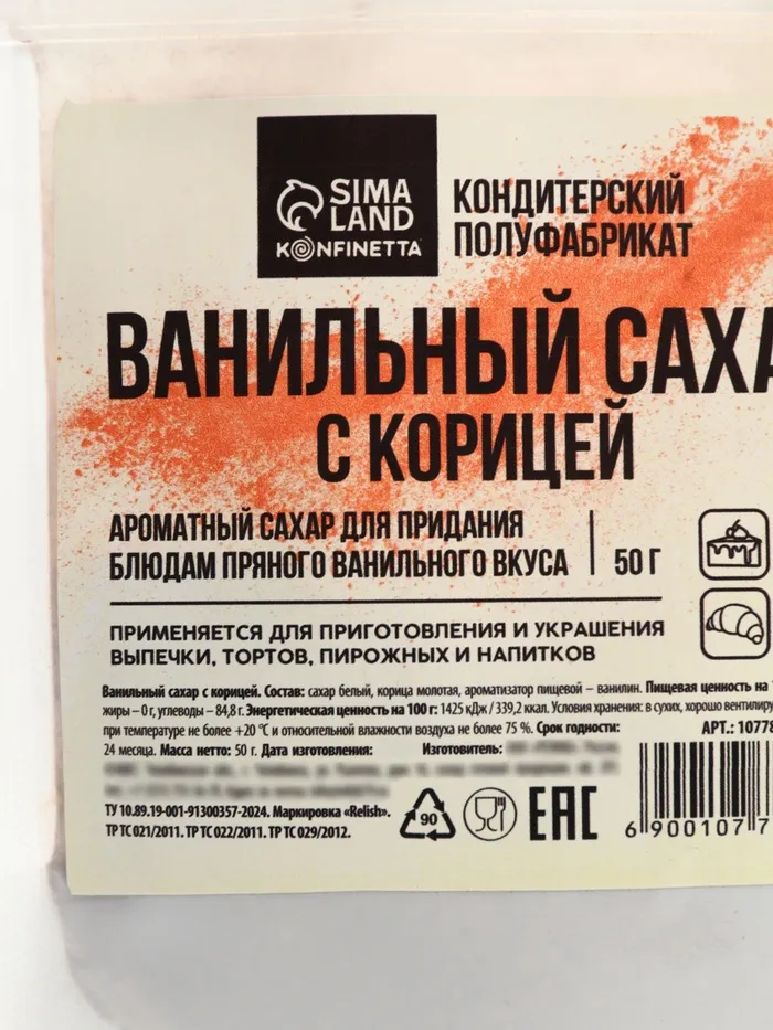 Сахар ванильный для куличей и рулетов с корицей, 50 г — Характеристики