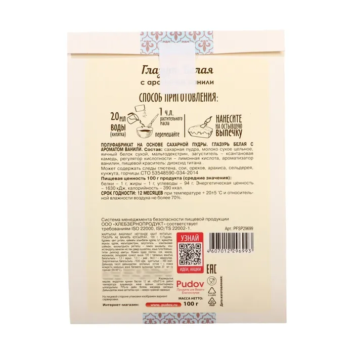 Сахарная глазурь «С. Пудовъ», белая, 100 г — Характеристики