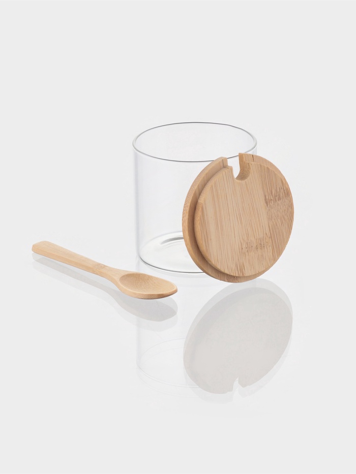 Сахарница Bella Tenero «Эко», 300 мл, 8×8×8.5 см, с бамбуковой крышкой и ложкой, стекло, прозрачная — Характеристики