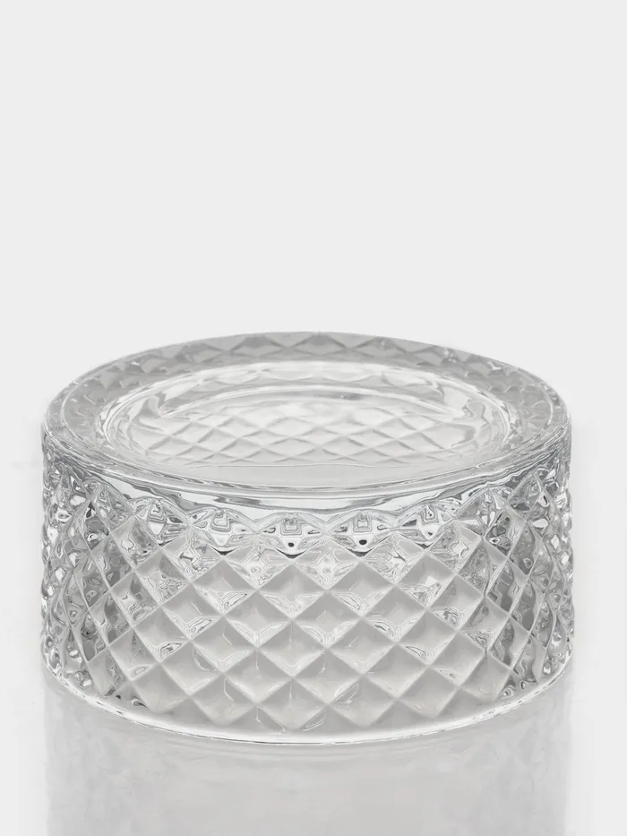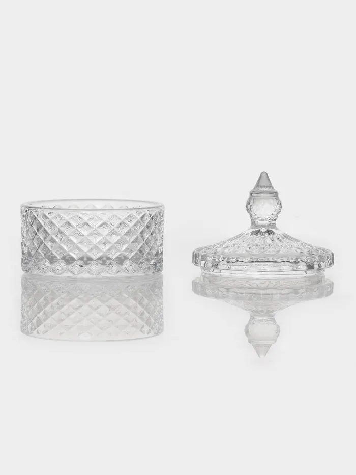 Прозрачный цвет и рельефная текстура делают эту сахарницу не только функциональной, но и эстетически привлекательной.