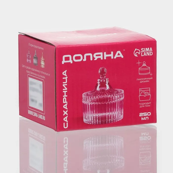 Сахарница Доляна «Царская», 250 мл, 10.5×12 см, стекло, прозрачная — Характеристики