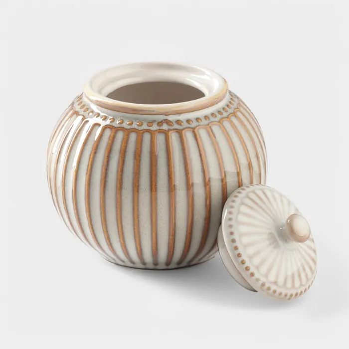 - Стильный дизайн: бежевый цвет и рельефная текстура делают сахарницу не только функциональной, но и эстетически привлекательной.